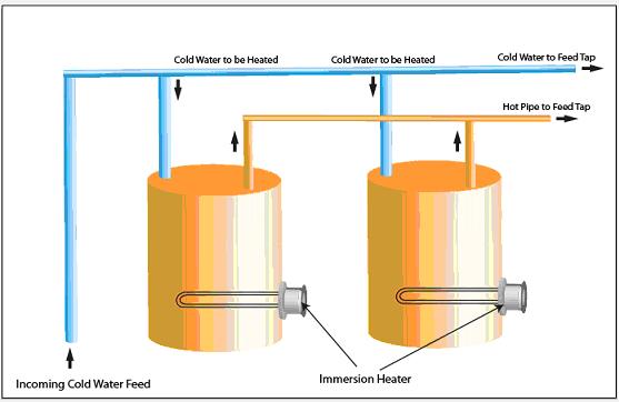 An illustration of a domestic water storage tank with an immersion heater is shown in Figure 1. In this process, incoming cold feed water from the municipal well enters system and fills up the hot water cylinder. Using an immersion heater is a cost and energy efficient way to pre-heat water in short period.