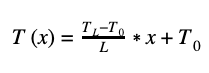 If we apply constant temperature boundary conditions at both walls: T(x=0)=T0, and T(x=L)=TL, then B=T0, and TL=A*L+T0, or A=(TL-T0)/L. Putting these together, the temperature distribution in the wall is: