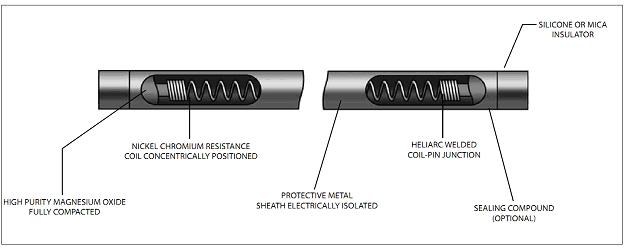 Une illustration d’un réservoir de stockage d’eau domestique accompagné d’un thermoplongeur est disponible dans la Figure 1. Dans ce processus, l’eau d’alimentation froide du puits municipal entre dans le système et remplit le ballon d’eau chaude. L’utilisation d’un thermoplongeur est un moyen efficace d’économiser des coûts et de l’énergie pour chauffer l’eau en peu de temps. Le thermoplongeur est installé près du fond du réservoir afin de préchauffer l’ensemble du ballon avant que l’eau n’atteigne les robinets. Ce type de réchauffeur est constitué d’un élément de chauffage fabriqué avec une gaine métallique qui enveloppe une résistance au nickel chrome avec de l’oxyde de magnésium (Figure 2).