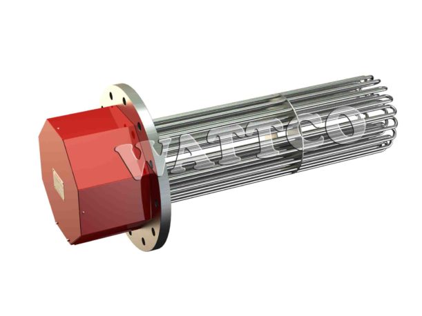 Une sélection populaire de thermoplongeurs électriques WATTCO™ inclut le thermoplongeur à bride. Ce type d’appareil de chauffage électrique consiste en un faisceau de tubes d’éléments chauffants qui est fixé à une bride en acier, laquelle est utilisée pour l’ensemble source électrique et la régulation de la température (voir la figure 1). Un thermoplongeur à bride constitue le meilleur choix pour chauffer un réservoir de liquide visqueux tel qu’une grande cuve de stockage de pétrole brut. Dans le processus de raffinerie, le pétrole brut doit être chauffé avant la distillation fractionnée pour la séparation du produit. Le processus de préchauffage se réalise généralement effectué dans un grand fourneau à une température élevée d’environ 370 à 425°C. Avant d’envoyer le pétrole brut vers l’unité de four, la température du pétrole doit être suffisamment élevée pour que sa viscosité ne réduise pas le débit du traitement du pétrole. Un retard dans le transport du pétrole brut depuis la cuve entraînera finalement un délai plus long dans le cadre du processus de raffinage. Ce problème peut se résoudre facilement en utilisant des éléments chauffants pour le préchauffage du pétrole brut. La longueur du tube et la forme du thermoplongeur à bride sont sélectionnées en fonction de l’application souhaitée.